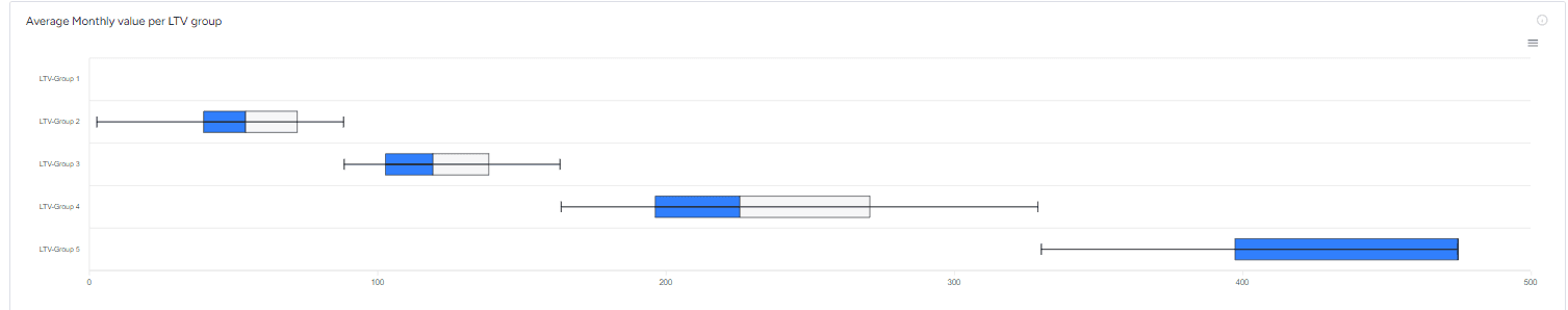 You can view statistical values such as maximum, minimum and median of CLV values in the groups into which your customers are classified.