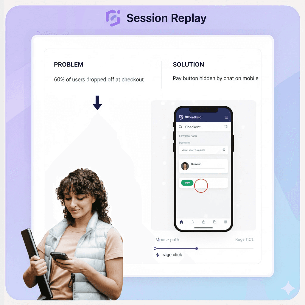 Quantitative data tells you what happened, but Session Replay tells you why. Bridge the gap between numbers and human behavior.